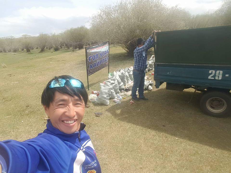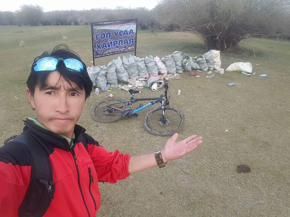 Аялагч Ч.Мөнгөндалай Орхон голын эрэг дагуух хогийг ганцаараа цэвэрлэн, хэдэн өдрийн нүүрийг үзэж байгаа билээ.