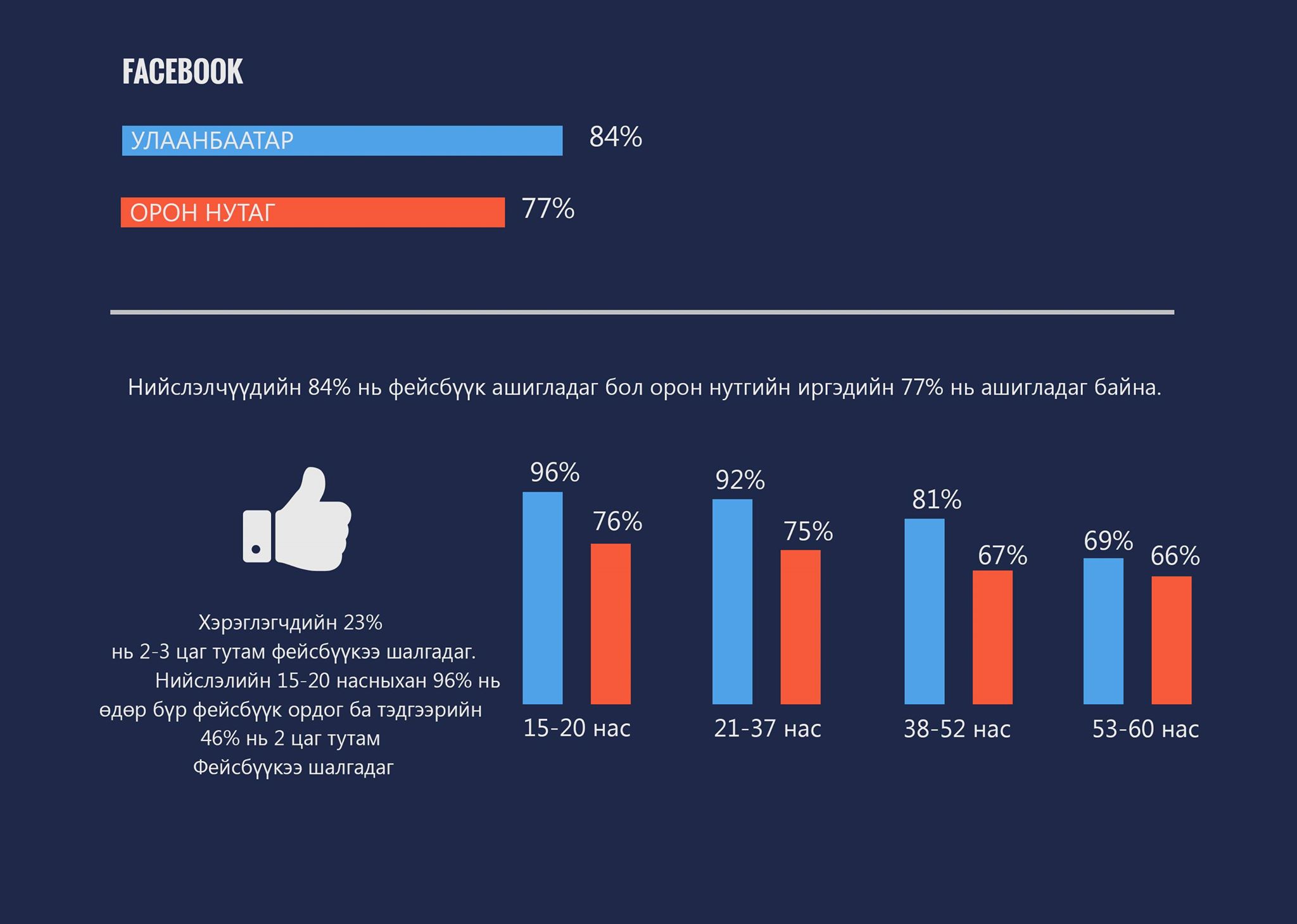 Фэйсбүүк орчинд 2017 онд гэхэд 299 ийм төрлийн гэмт хэрэг бүртгэгдсэн, 2018 оны эхний зургаан сарын байдлаар 279 бүртгэгдсэн байдаг. Үүний дийлэнх хувь нь фэйсбүүкээр дамжин залилан хийсэн байна. Тодруулбал хэрэглэгчийн фэйсбүүкийн нууц үгийг олж авч, найз нөхөд рүү нь чатаар буюу харицлан яриагаар мөнгө гуйж шилжүүлж авах авсан даруйдаа блоклох. Тэрхүү мөнгөө урьдчилан бэлдсэн дансанд авах тэр данс нь мөн хохирогчийн данс байх гэх зэрэг гэмт хэргүүд гарсан байдаг. Цахим гэмт хэрэгтэй тэмцэх хэлтэст ирүүлсэн гомдолоос гадна маш олон хэрэглэгчид энэ байдлаар мөнгө, санхүүгийн хохиролд орсон байгаа байх. Тиймд бид хуулийн хүрээнд зохицуулахаар ажиллаж байна.
