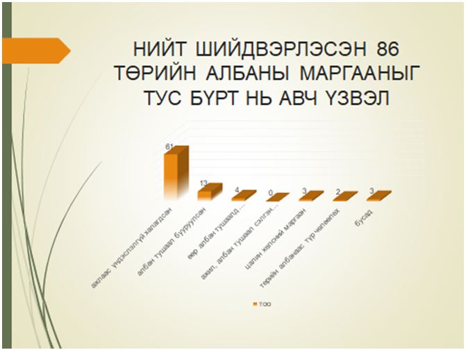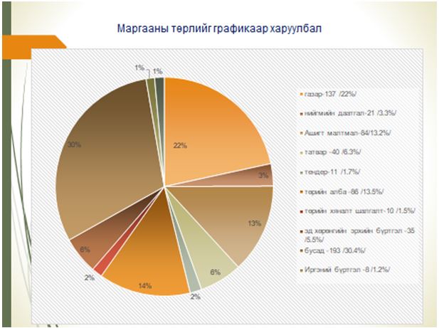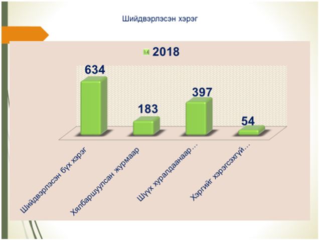 Нийт 634 хэргээс 183 буюу 28,8%-ийг нь хялбаршуулсан журмаар шийдвэрлэсэн байна.