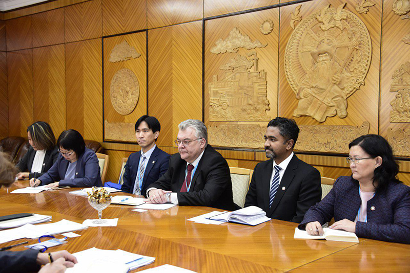 ДЭМБ-ын Монгол дахь Суурин төлөөлөгч Сергей Диордица, ДЭМБ-ын Номхон далайн баруун бүсийн сүрьеэ, лепрозын хэлтсийн зохицуулагч Таухид Ислам, ДЭМБ-ын Женев дахь төвийн мэргэжилтэн Нобуюки Нишикиори тэргүүтэй төлөөлөгчдийг “Сүрьеэгүй Монгол” УИХ-ын лобби бүлгийн ахлагч, УИХ-ын гишүүн, Нийгмийн бодлого, боловсрол, соёл, шинжлэх ухааны байнгын хорооны дарга Ё.Баатарбилэг хүлээн авч уулзав. 2018.10.31. Дэлгэрэнгүй