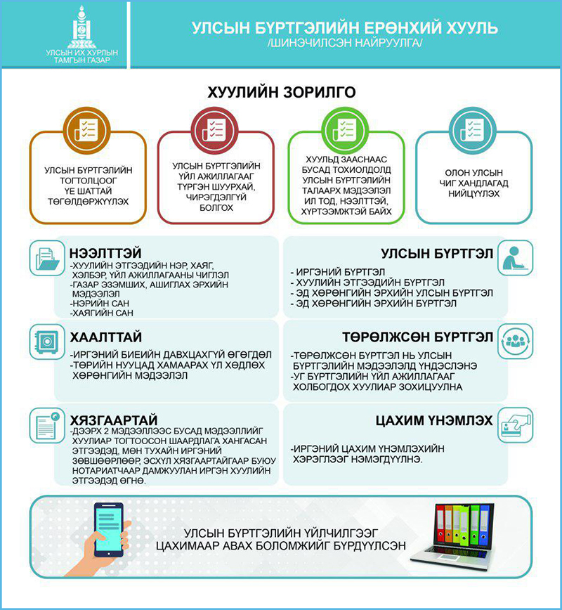 ИНФОГРАФИК: Улсын бүртгэлийн багц хуулиуд хэрэгжиж эхэллээ. Дэлгэрэнгүй