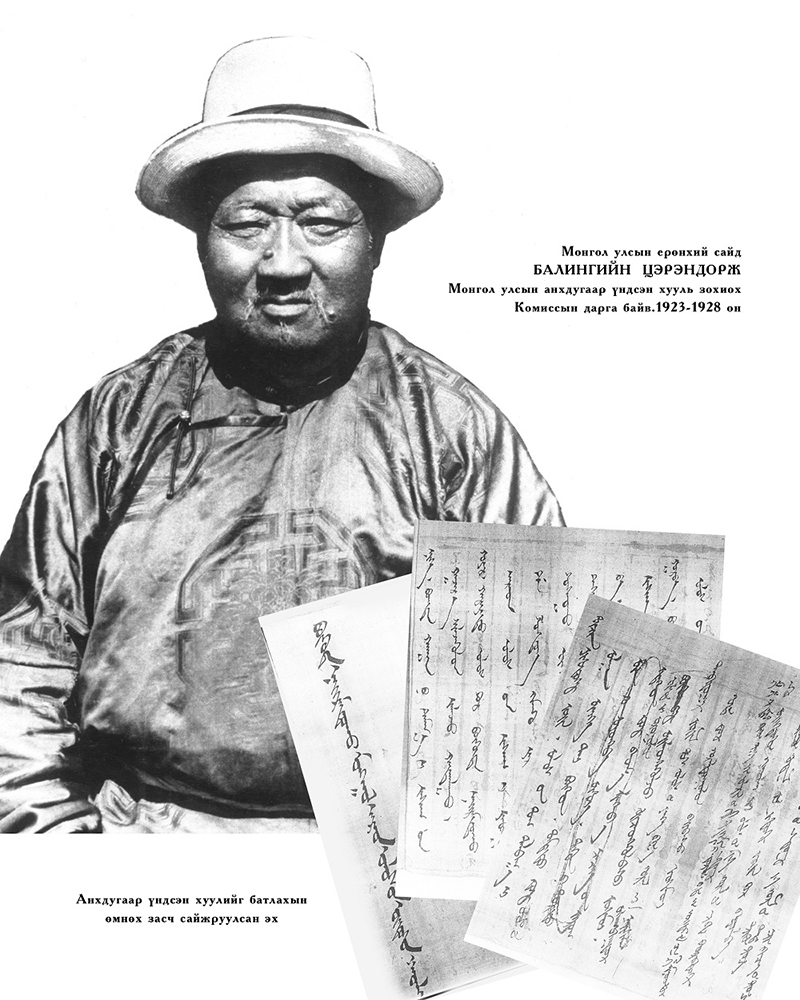 Анхдугаар Үндсэн хуулийн эх бичгийн сүүлийн хуудаст “Монгол Улсын 14 дүгээр оны 10 сарын 30 бөгөөд аргын улирлын 11 сарын 26-ны өдрийн үдийн хойт 4 цаг 17 минутад энэхүү Үндсэн хуулийг Улсын анхдугаар Их Хурлын 14 дүгээр тогтоолын 1 дүгээр зүйлд батлав. Хурлын дарга Жадамба, дэд дарга Бадрах, нарийн бичгийн дарга Гэлэгсэнгэ, Дугаржанцан” хэмээжээ.