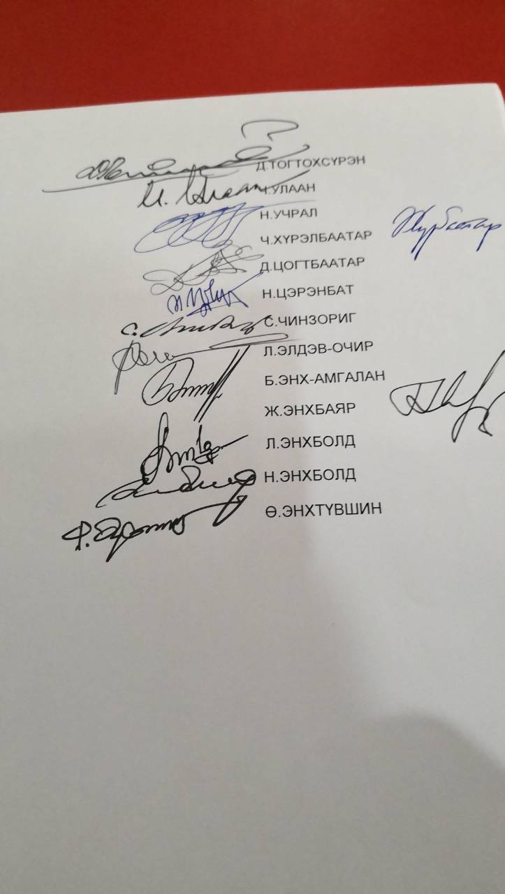 Засгийн газрыг тогтвортой ажиллуулах шаардлагатай гэсэн бичигт дараах гишүүд одоогоор албан ёсоор гарын үсэг зурсан байна.Тодруулбал,