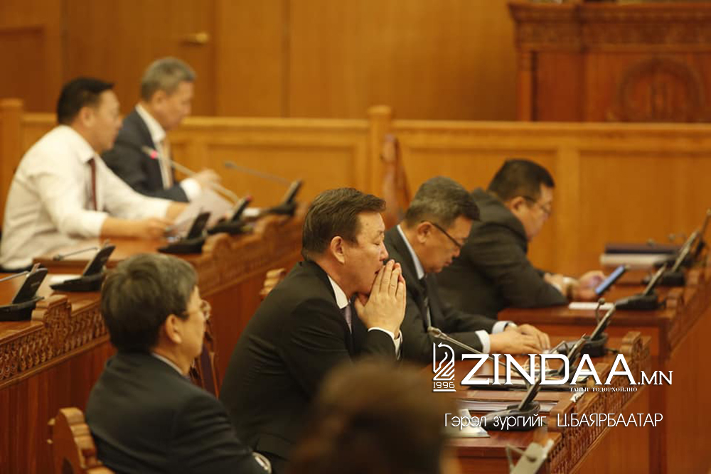 УИХ-ын гишүүн Д.Хаянхярваа нарын 27 гишүүний өргөн мэдүүлсэн Засгийн газрыг огцруулах тогтоолын төслийг Төрийн байгуулалтын байнгын хороо хэлэлцэн шийдвэрлэсэн талаар УИХ-ын гишүүн Д.Лүндээжанцан танилцуулсны дараа УИХ-ын гишүүд, асуулт асууж, хариулт авч байна.