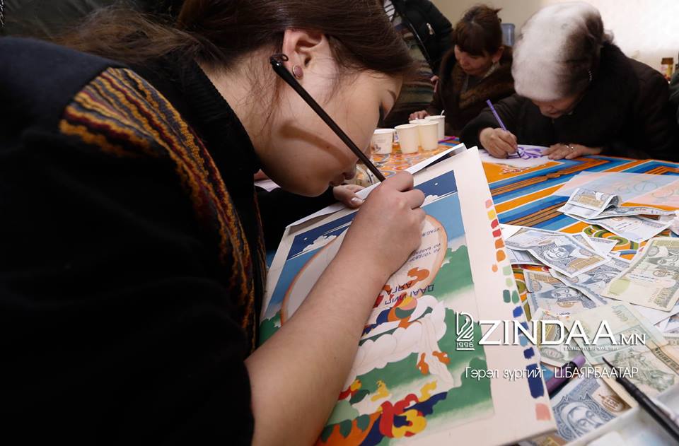 Өнөөдөр болж буй ёслолд 10 гаруй уран бүтээлч оролцон, Цагаан дара эх бурхан бүтээж байна.