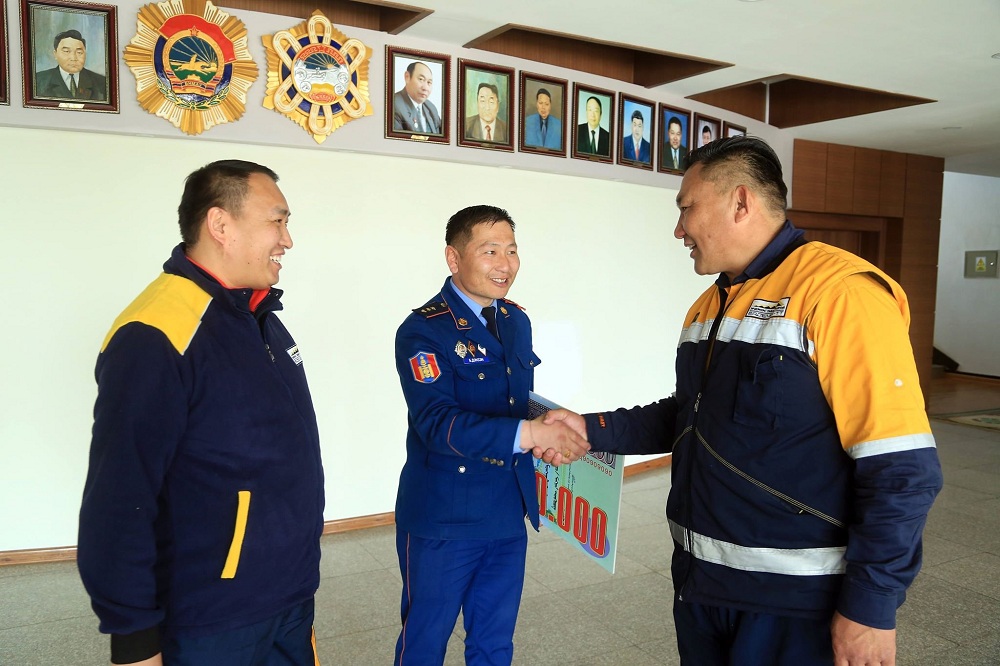 Өмнөговь аймгийн Онцгой байдлын газрын гамшгаас хамгаалах төлөвлөлт бэлэн байдал хариуцсан ахлах мэргэжилтэн, гамшгаас хамгаалах улсын хяналтын байцаагч ахлах дэслэгч Б.Дэнзэн хамт олноо төлөөлөн энэхүү сэтгэлийн бэлгийг хүлээн авсан бөгөөд компанийн нийт ажилчдад талархсанаа илэрхийлж, үр дүнтэй зарцуулахаа хэллээ.