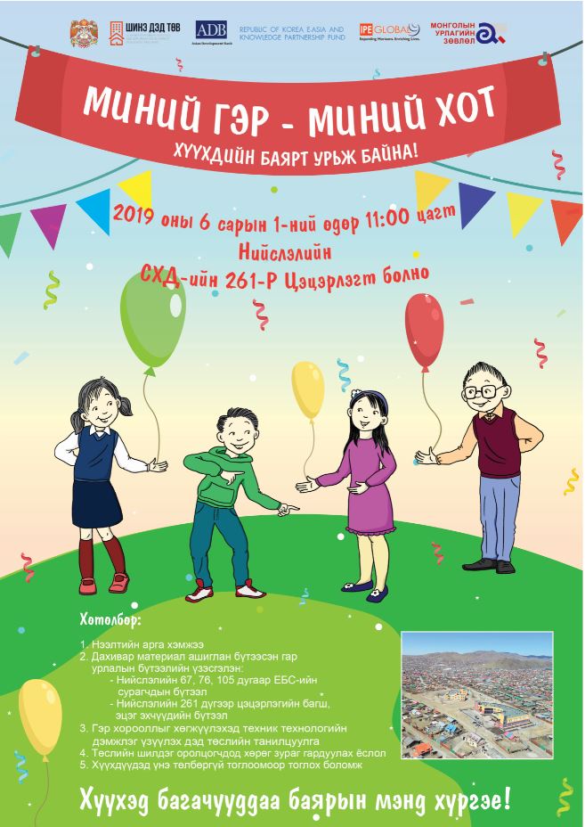 Улаанбаатар хотын ЗДТГ, Азийн хөгжлийн банкны дэмжлэгтэйгээр гэр хорооллыг хөгжүүлэхэд техник технологийн дэмжлэг үзүүлэх дэд төслийн хүрээнд гэр хорооллыг хөгжүүлэх, бага дунд орлоготой иргэдийг дэмжих “Миний гэр-Миний хот” хөтөлбөрийг хэрэгжүүлж байгаа юм.