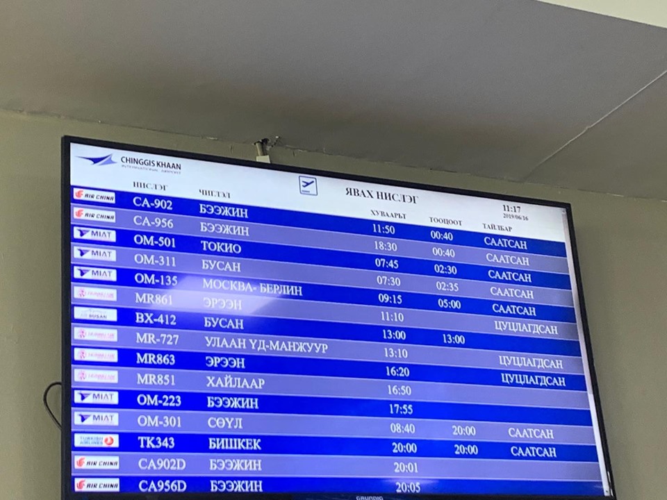 Та нислэгийн цагийн хуваарийн мэдээллийг https://www.miat.com/status.php?pageId=13&lang=mn хаягаар орж үзэх боломжтой юм. Мөн Air china, Turkish airlines зэрэг бүх авиа компаниудын нислэг хойшлогдсон байна.