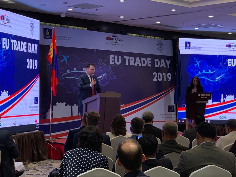 Монгол Улс, Европын холбооны худалдаа, эдийн засгийн хамтын ажиллагааг өргөжүүлэх зорилго бүхий "Европын худалдааны өдөрлөг-2019" өнөөдөр Туушин зочид буудалд боллоо. Уг арга хэмжээг нээж ГХЯ-ны Төрийн нарийн бичгийн дарга Д.Даваасүрэн, ЕХ-ноос Монгол Улсад суух Элчин сайд Траян Христэа, МҮХАҮТ-ын ерөнхийлөгч О.Амартүвшин нар үг хэлэв.