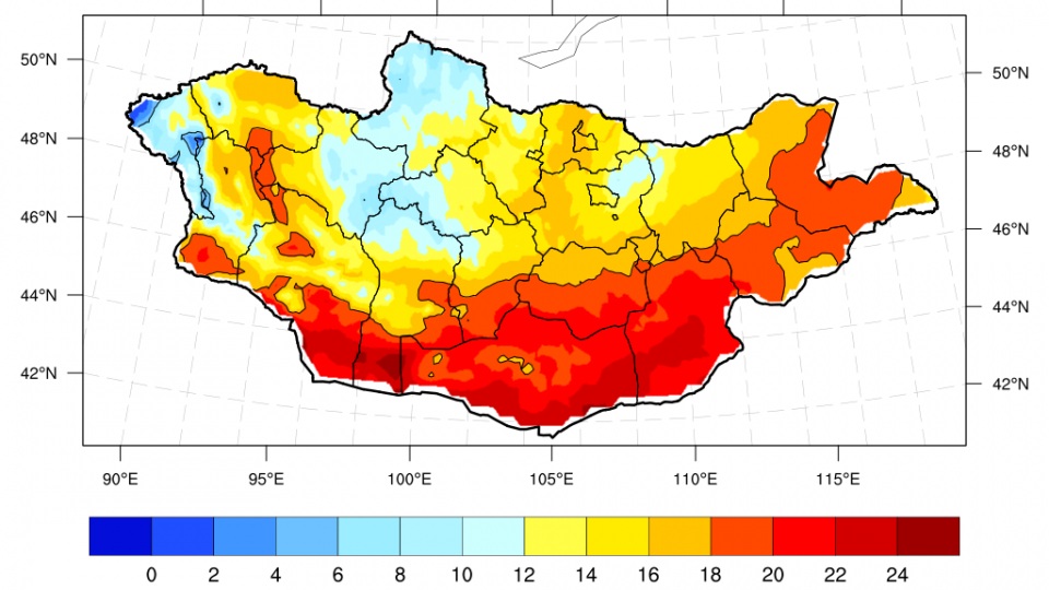 Цаг уур, орчны шинжилгээний газраас авсан мэдээллээр наймдугаар сард агаарын температурын сарын дундаж ихэнх нутгаар олон жилийн дунджаас 0.5-1.5 градусаар дулаан, Хөвсгөлийн уулархаг нутгаар олон жилийн дунджийн орчим байна. Энэ сард Увс аймгийн зүүн, Завхан аймгийн хойд хэсэг, төв болон зүүн аймгуудын ихэнх нутгаар олон жилийн дунджаас ахиу, Архангай, Өвөрхангай аймгийн өмнөд хэсэг, говийн аймгуудын нутгаар олон жилийн дунджийн орчим бороо орох төлөвтэй байна.