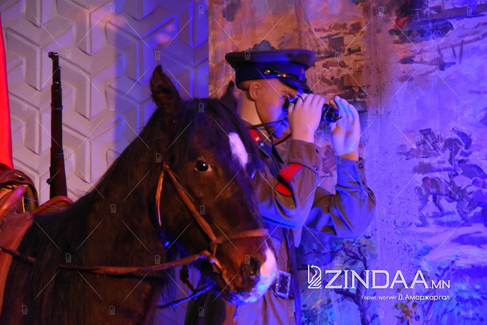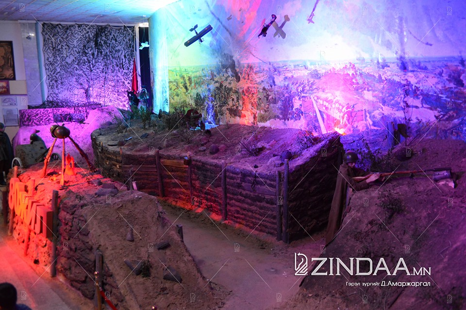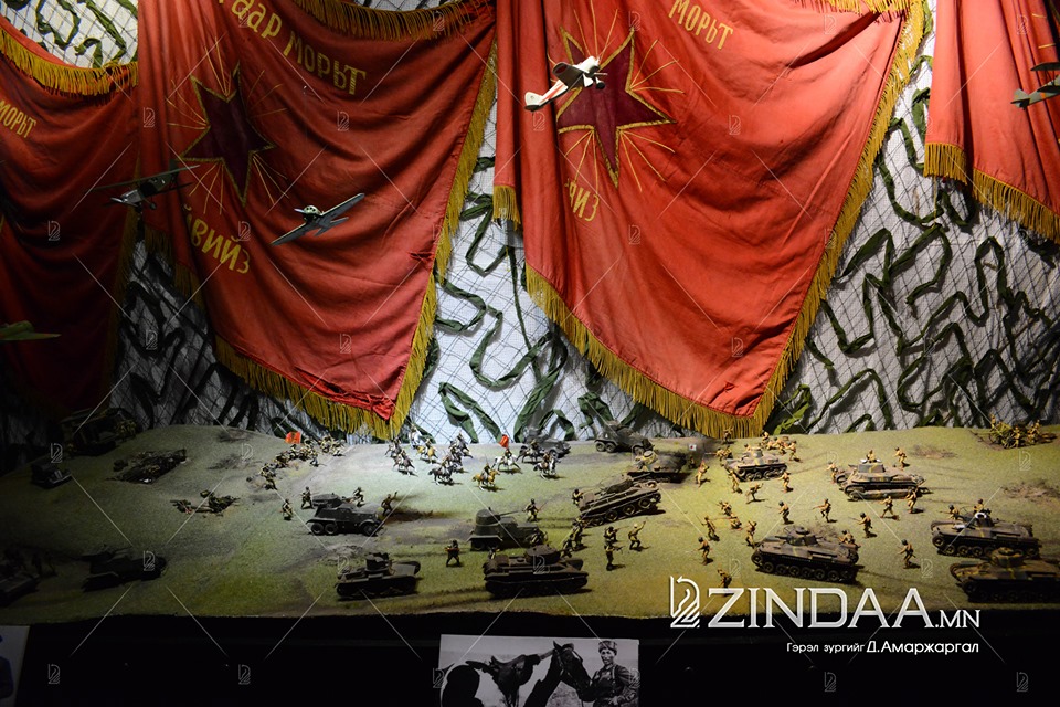Энгэр дүүрэн одон гялалзуулсан өндөр настан буурай, Халхголын байлдаанд оролцож байсан Ц.Чимэдцэрэн зочдын харааг булааж, хүндэтгэлийг төрүүлсэн хамгийн ахмад дайчин байлаа. Тэрбээр “Эмээ нь 1939 оны Халхын голын дайнд Цэргийн эмнэлэгт ажиллаж байсан. “Цэргийн музейг үзээд одоогоос наян жилийн өмнөх үеийг харах шиг боллоо” гэв. Монгол цэргийн музейн танхимд өнгө, өнгийн гэрлээр гоёсон үүдэн төв хэсэгт одоогоос 80 жилийн өмнөх Халхголын байлдааны ялалтад шийдвэрлэх нөлөө үзүүлсэн “Баянцагааны тулалдаан”-ы үйл явдлыг харуулсан орчин угтлаа. Элгээрээ хэвтэж, дайсан руу галлаж буй дайчид, өстний нуувч руу дурандаж буй ахмад, дайны мөнхийн анд нөхөр үнэнч хүлэг морь зэрэг тухайн цаг үеийн бодит байдлыг түүхэн ялалтын 80 жилийн ойгоор анх удаа дэлгэн харуулж байгаагаараа онцлог юм. Командын байранд тактик боловсруулж буй Маршал Жуков, Чойбалсан хоёрын дэргэд зургаа татуулах Оросын Зэвсэгт хүчний Жанжин штабын академийн хүрээлэнгийн Цэргийн түүх судлалын эрдэм шинжилгээний ахлах ажилтан дэд профессор Божедомов Борис Александровичийн сэтгэгдлийг сонсов. “Дайн дэгдээсэн ямар ч улс, эх орноо хамгаалж буй дайчин эрст ялагддаг юм гэдгийг Халхын голын дайны ялалт ямагт сануулж байх учиртай учраас бид энэхүү түүхэн гавьяаг мартах ёсгүй. Орос, Монгол зүрхэнд энэ ялалтын уухай одоо ч нүргэлсээр байгаа түүхэн дурсамжаар бид ямагт холбоотой ахан дүүс байсаар байх болно” гэв.