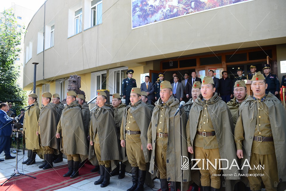 Намрын эхэн сарын нартай цэлмэг өдөр Цэргийн гавьяаны Улаан тугийн одонт Монгол цэргийн музейд дайны хүнд өдрүүдийн “тэнгэр бүрхэв”. Тус музейн гадаах талбайд Халхголын байлдааны үед хэрэглэж байсан танк, их буу, онгоц, хуягт машиныг байрлуулсан бөгөөд цэргийн хувцастай ахмад дайчид, үлгэр жишээ үлээвэр найрал хөгжмийнхөн эгнэн зогсжээ. Ямар нэгэн зүйлийг хүлээж буй хурандаа, генералууд, эрдэмтэн судлаачид, яруу найрагчид, хөгжмийн зохиолчид мөн хэвлэл мэдээллийнхэн бүрээн дуугаар бөөгнөрөн зогслоо.