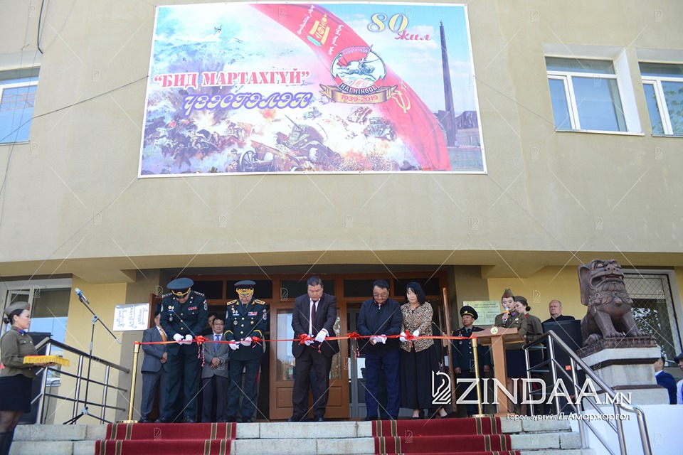 Жирмэн хөх урсгал Халхын гол байсан юм” гэж хуран чуулсан хүмүүстэй мэндчилж Халхголын байлдааны ялалтын 80 жилийн ойд зориулсан тус музейн “Бид мартахгүй” үзэсгэлэнг нээлээ. Цэргийн дуу, бүжгийн эрдмийн чуулгын найрал дуучид Халхын голын дайны ялалтын он жилүүдийг эргэж бодогдуулам, эр цэргийн цог жавхааг илтгэсэн сүр бадрангуй дууг сонордуулж, зочдын сэтгэлийг сэргээж, зовхийг өргөлөө.