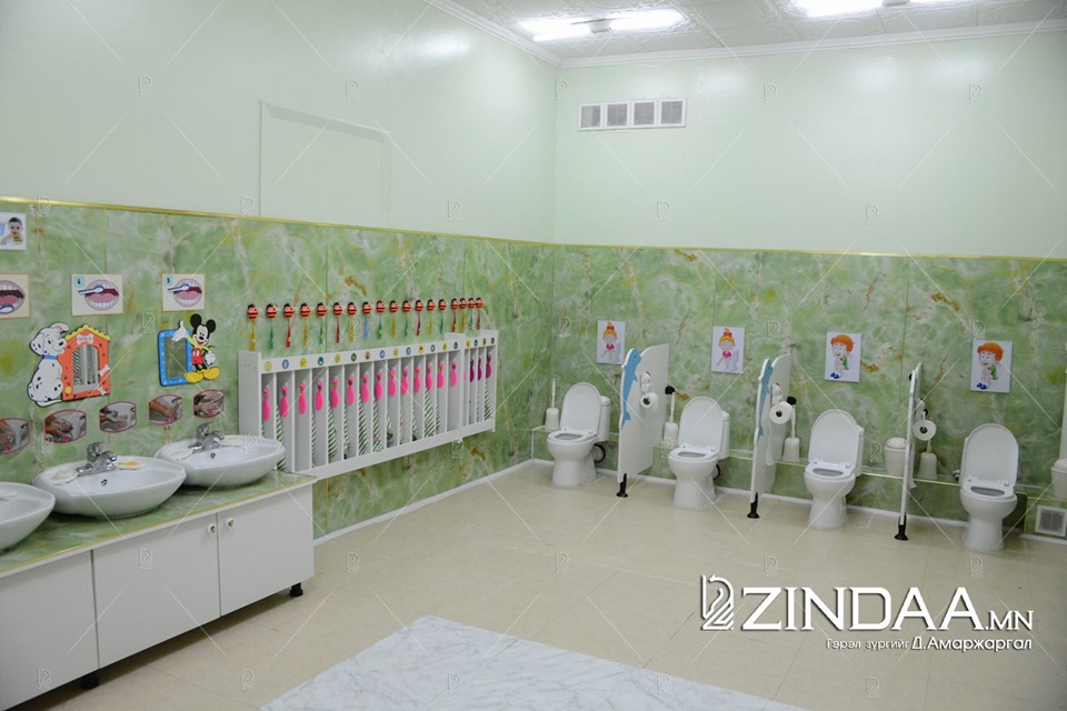 Тус цэцэрлэгийн 18 бүлгийн бүх ариун цэврийн өрөөг орчин үеийн стандарт нийцсэн, эрүүл ахуйн шаардлага хангасан угаалтуур, суултуурыг суурилуулжээ. Хүүхдүүдээс “Цэцэрлэгт явах гоё уу? Юу нь гоё вэ? " гэж асуухад “Манай цэцэрлэгийн ариун цэврийн өрөө гоё, би өдөрт 4 удаа гараа угаадаг гэж уралдан хэлцгээж байлаа.