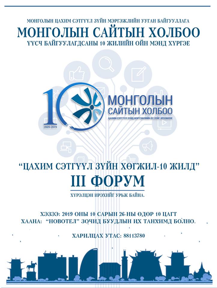 Ойн хүрээнд Монголын сайтын холбооноос “Цахим сэтгүүл зүйн хөгжил - 10 жилд” III форумыг зохион байгуулах гэж байна. Форумаар цахим сэтгүүл зүйн өнөөгийн байдал, ирээдүйн хөгжлийн талаар хэлэлцэнэ.