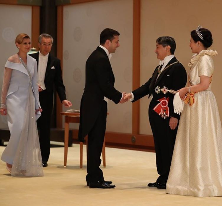 Владимир Зеленский, Елена Зеленская нар нь Японы эзэн хаан сэнтийдээ залрах ёслолд оролцсон Украины анхны Ерөнхийлөгч, Тэргүүн хатагтай нар болсон юм. Еленагийн өмссөн хоёр дахь даашинз нь харин олны таалалд нийцсэн бололтой.