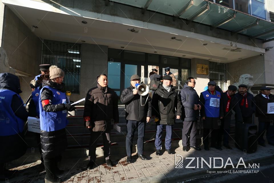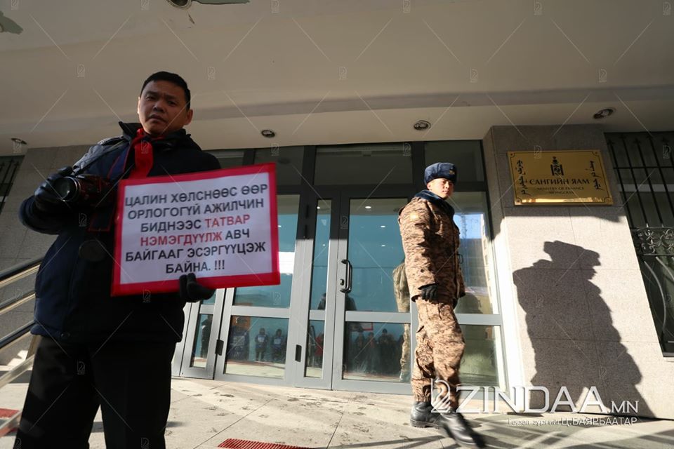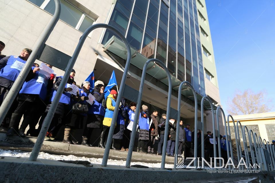 Сангийн яамны гадна талбайд яг одоо Нийгмийн даатгалын шимтгэл нэмэхийг эсэргүүцэж, Үйлдвэрчний эвлэлийн байгууллагын гишүүд жагсаал зохион байгуулж байна.