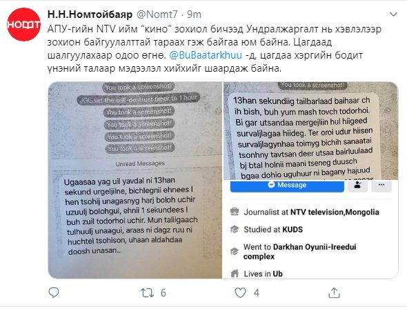 Тэрбээр “АПУ-гийн NTV ийм “кино” зохиол бичээд Ундралжаргалт нь хэвлэлээр зохион байгуулалттай тараах гэж байгаа юм байна. Цагдаад шалгуулахаар одоо өгнө. @BuBaatarkhuu -д, цагдаа хэргийн бодит үнэний талаар мэдээлэл хийхийг шаардаж байна” гэсэн байна.