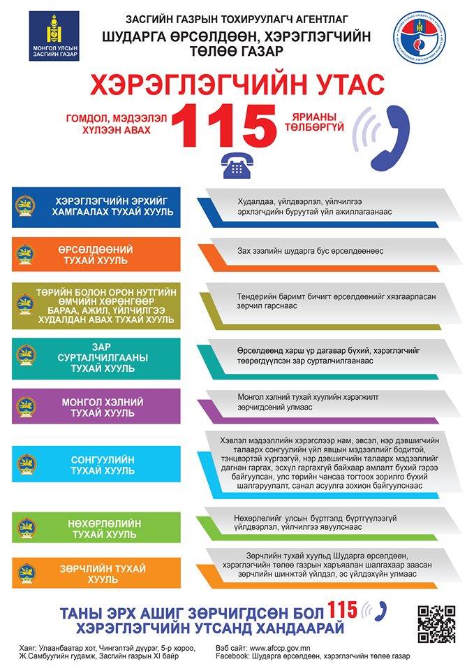 Өнөөдөр /2020.03.13/ Монгол Улсын Шадар сайдын зөвлөх С.Янжинсүрэн, ШӨХТГ-ын дарга Б.Лхагва болон бусад холбогдох албаныхан “Хэрэглэгчийн утас -115” -ны албан ёсны нээлтийг хийсэн юм.