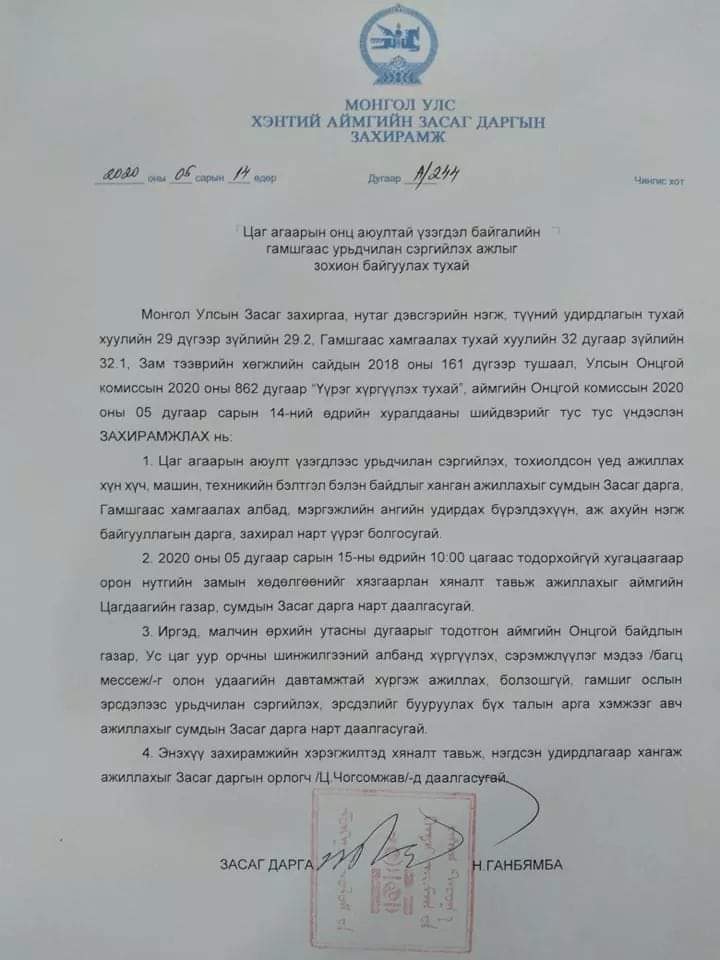 Цаг агаарын гамшигт үзэгдлээс урьдчилан сэргийлэх зорилгоор Хэнтий аймгийн Засаг даргын захирамжаар тодорхойгүй хугацаанд орон нутгийн замын хөдөлгөөний хязгаарлалт хийлээ.
