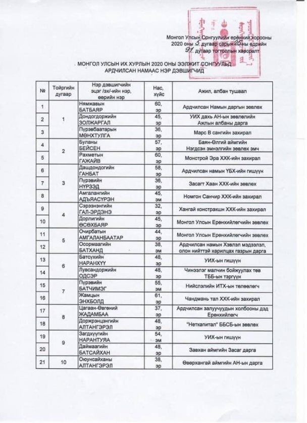 Ингээд албан ёсоор нэр дэвших эрхээ авсан АН-ын гишүүдийг танилцуулж байна.