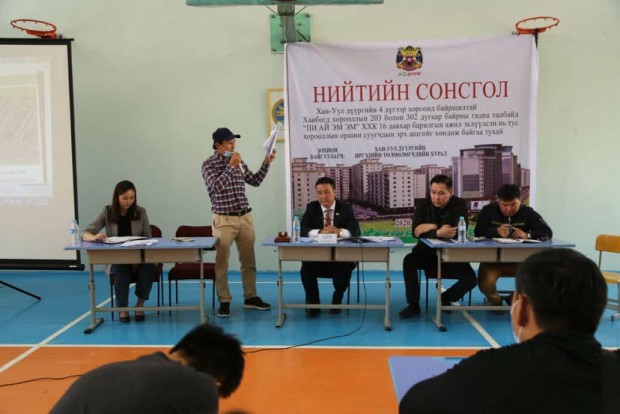 Сонсголыг Хан-Уул дүүргийн ИТХ-ын дарга Б.Цэрэн даргалж Хан-Уул дүүргийн Засаг даргын 1-р орлогч Г.Батсайхан, 4-р хорооны засаг дарга О.Ганхуяг, дүүргийн ИТХ-ын Төлөөлөгч О.Баярсайхан нар болон "Пи Ай Эм Эм" ХХК-ийн захирал Н.Мэндсайхан, барилгын инженер Н.Сандагдорж, Ханбогд хорооллын оршин суугчдын төлөөлөл 393 иргэд оролцсон.