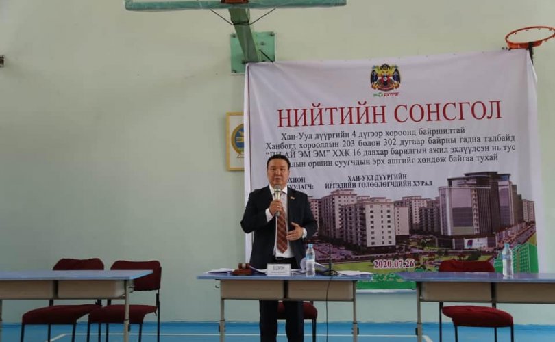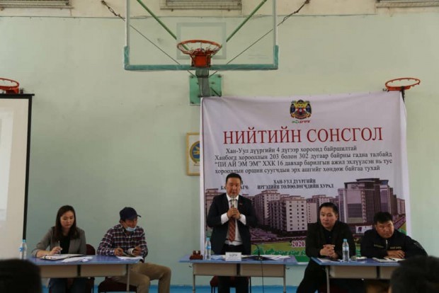 ИТХ-ын дарга Б.Цэрэн Нийтийн сонсголын тухай хууль, Нийтийн сонсгол зохион байгуулах дэгийг танилцуулснаар үйл ажиллагаа эхэллээ. Ханбогд ресиденс хорооллын оршин суугчид ногоон байгууламж төлөвлөсөн газар хууль зөрчиж орон сууцны барилгын ажил эхлүүлсэн нь иргэдийн эрүүл аюулгүй амьдрах эрх зөрчигдсөн, машины зогсоол байхгүй, оршин суугчид нэмэгдсэнээр цэцэрлэг сургуулийн хүртээмж улам хүрэлцэхгүй болох зэргээр уг барилгын ажлыг эсэргүүцэж байна. Тус компани анхны хорооллыг барихад цэцэрлэг барихаар төлөвлөсөн байсан ч өндөр төлбөртэй хувийн цэцэрлэг барьсан тул оршин суугчдын шаардлагыг хангахгүй байгаа юм. Мөн энэ газар улсын цэцэрлэг бариулах хүсэлтэй байгаа тухай өөрсдийн байр сууриа илэрхийлж байсан юм.