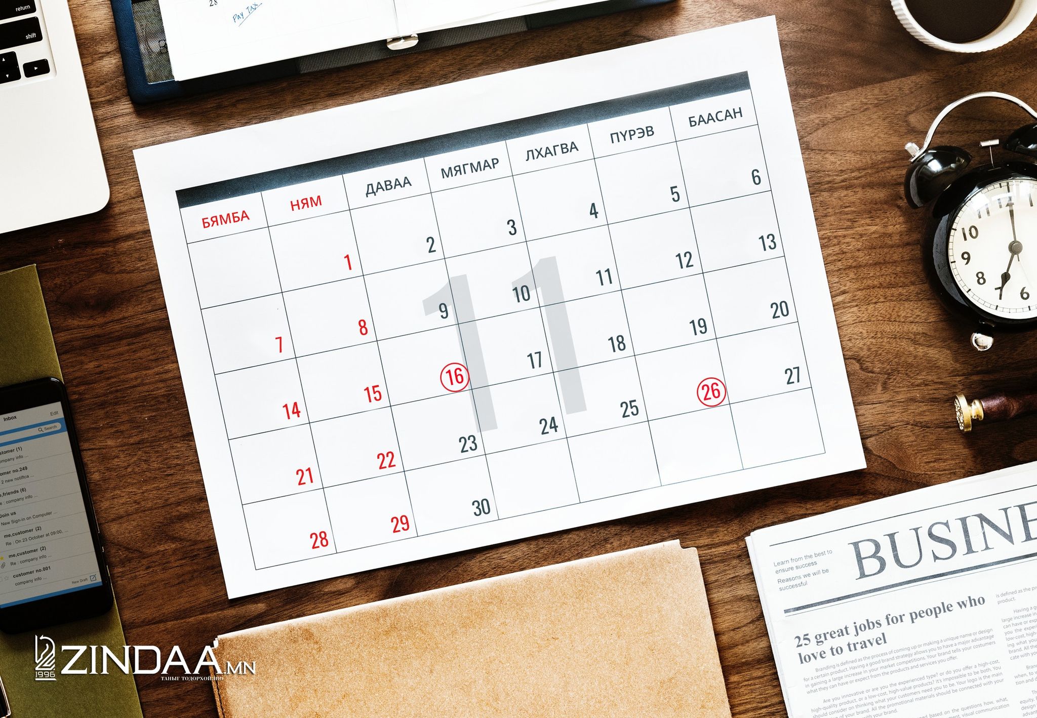 Өвлийн тэргүүн сарын шинийн нэгэн буюу арваннэгдүгээр сарын 16-ны даваа гарагт Их эзэн Чингис хааны мэндэлсний 858 жилийн ой, Монгол бахархлын өдөр тохиож байгаа бол арваннэгдүгээр сарын 26-ны пүрэв гарагт Монгол Улс Анхдугаар Үндсэн хуулиа баталж, Бүгд Найрамдах Монгол Улс тунхагласны 96 жилийн ойн өдөр болно.