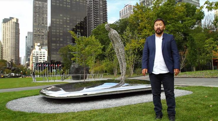 АНУ-ын Нью Йорк хотын НҮБ-ын төв байрны цэцэрлэгт хүрээлэнд сүндэрлэсэн “Ухамсар” хөшөөний дэргэд дурсгалын зураг авахуулсан монголчууд
