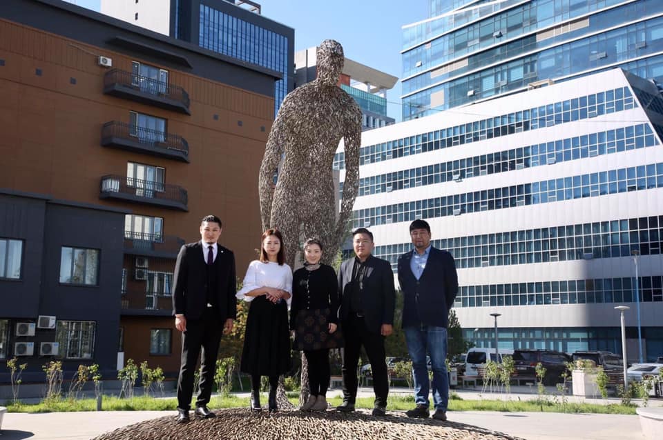 Харин бүтээлийн эзэн, уран барималч А.Очирболд ярилцлага өгөх үеэрээ хөшөөгөө хүндэтгэн, өмнө нь зогсжээ.