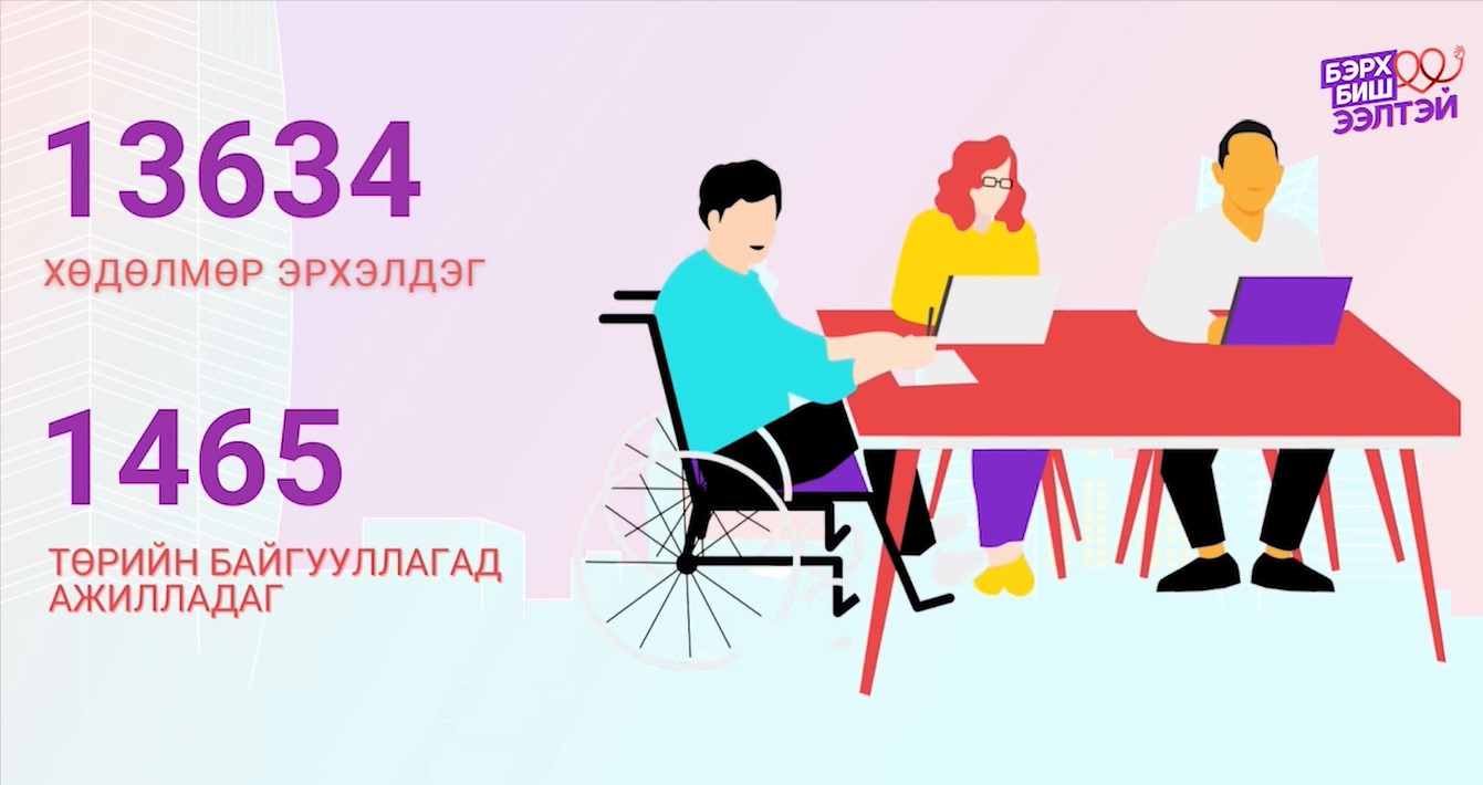 Нийгмийн даатгалын тэтгэвэр тогтоолгосон 42 мянган хөгжлийн бэрхшээлтэй иргэн байгаа ба төрөөс хөгжлийн бэрхшээлтэй иргэдэд 22 нэр төрлийн тэтгэмж, хөнгөлөлт үзүүлж, үүнд өнгөрөгч онд улсын төсвөөс 18.1 тэрбум төгрөгийг зарцуулжээ. Одоогийн байдлаар 13 мянган хөгжлийн бэрхшээлтэй иргэн хөдөлмөр эрхэлж байгаагийн 1465 нь төрийн байгууллагад ажиллаж байгаа аж.