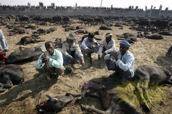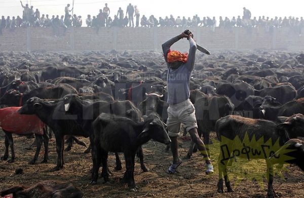 Непалийн өмнөд нутаг. Эндхийн оршин суугчид Гадхимаи (Gadhimai) хэмээх бурхандаа өргөл болгож хэдэн зуун малаар тахилга өргөдөг байна. Энэ цуст баяр нь Непаль, Энэтхэгийн хилийн ойролцоо орших Барияпур (Bariyapur) тосгонд хоёр өдөр болдог. Цусан гол урсана. Ингэснээр бурхан тэднийг зовлонгоос ангижруулна гэж мунхагладаг ажээ. Хөрш Энэтхэгээс ч энэ аллагад оролцохоор сүсэгтэнгүүд ирдэг байна.
