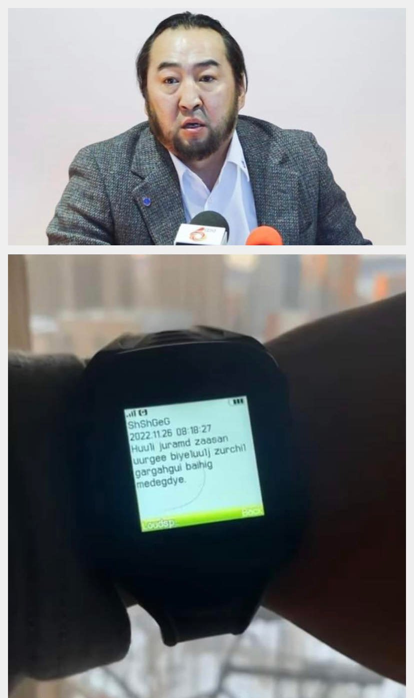 Энэ үеэр тухайн дүүрэгт ял эдэлж буй Д.Монголхүүгийн цахим бугуйвч хөдөлгөөн хийгээгүй буюу улбар шар төлөвт шилжсэн байсан тул тус өдрийн 11.17 цагт бугуйвчийг гарнаас тайлж, шалган, хэвийн болгон буцааж зүүж өгсөн. Энэ талаарх анхааруулга /системд бугуйвчийн оосор тайлагдсан, бүсийн хязгаарт 200 м ойртсон, бүсээс гарсан, цэнэг дууслаа 5 хувь, яаралтай цэнэглэнэ үү гэх анхааруулга зөвхөн гар бугуйвчинд ирдэг/ мессеж цахим бугуйвчинд ирсэн болно.