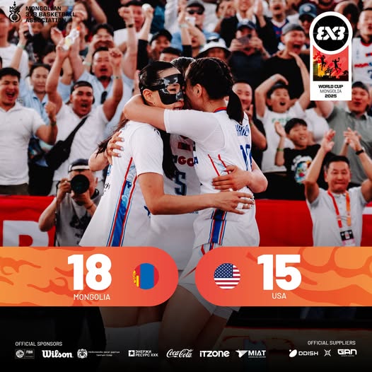 Хэдхэн минутын өмнө сагсанбөмбөгийн эх орон АНУ-ын шигшээ багийг Монголын шигшээ хожиж, шөвгийн дөрөвт шалгарлаа. Хэсгийн эхний хожлоор нь бид бахархсан бол дараа нь дахиж хоёр хожоод хэсгээсээ гарахад Монголын сагсанбөмбөгийн түүхийг бичлээ гэж магтсан.