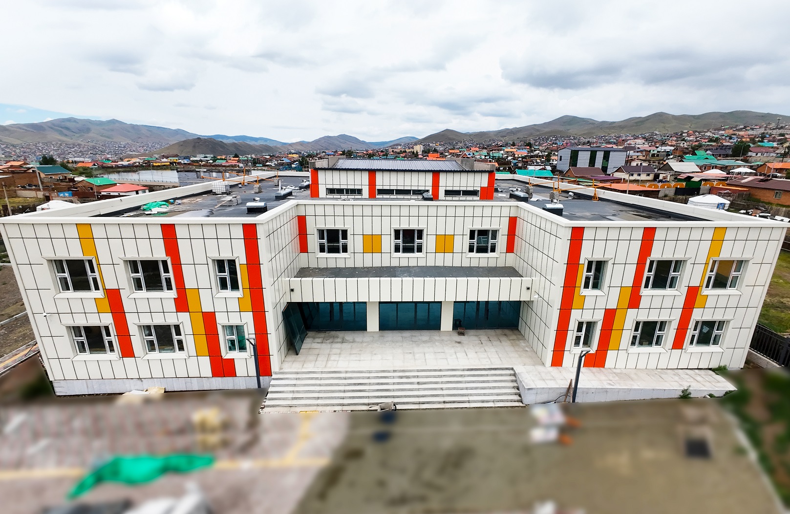 Тус сургуулийн барилгыг 36х36 хэмжээтэй, зоорьгүй хоёр давхар байхаар төлөвлөсөн. Мөн барилгын төмөр бетон арагт бүтээц, гадна болон дотор ханын өрлөг шаврын ажил, гадна эрдэс хөвөн дулаалга болон метал фасадын ажлууд дууссан. Одоогоор барилгын дотор засал болон гадна тохижилтын ажлууд үргэлжилж байна.