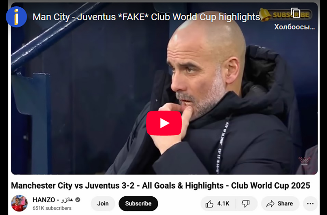 Үүнээс гадна “Манчестер Сити”-“Ювентус”-ын тоглолтын хуурамч бичлэг буюу өмнөх тоглолтуудын гоолыг эвлүүлж хийсэн хэсгүүд олноор ютүбд оржээ. “Ювентус”-ын хаалганд Мартин Дубравка зогсох аж. “Ньюкасл”-ын хаалгачийг Турины клубд хээв нэг тоглуулсан иймэрхүү хуурамч бичлэгүүд тоглолт эхлэхээс хэдэн цагийн өмнө орж, олон мянган хүн хууртан үзсэн байна.