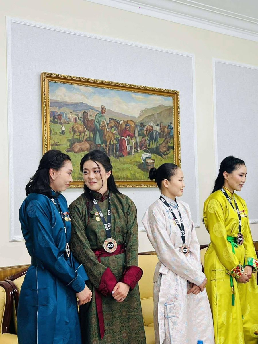 Монгол Улсын Ерөнхийлөгч Ухнаагийн Хүрэлсүх зарлиг буулган, Дэлхийн аварга шалгаруулах тэмцээнээс мөнгөн медаль хүртэж, улсынхаа нэрийг өндөрт өргөн, багийн спортын төрөлд онцгой амжилт үзүүлсэн 3×3 сагсан бөмбөгийн эмэгтэй шигшээ багийн тамирчдад Гавьяат тамирчин цол хүртээлээ.