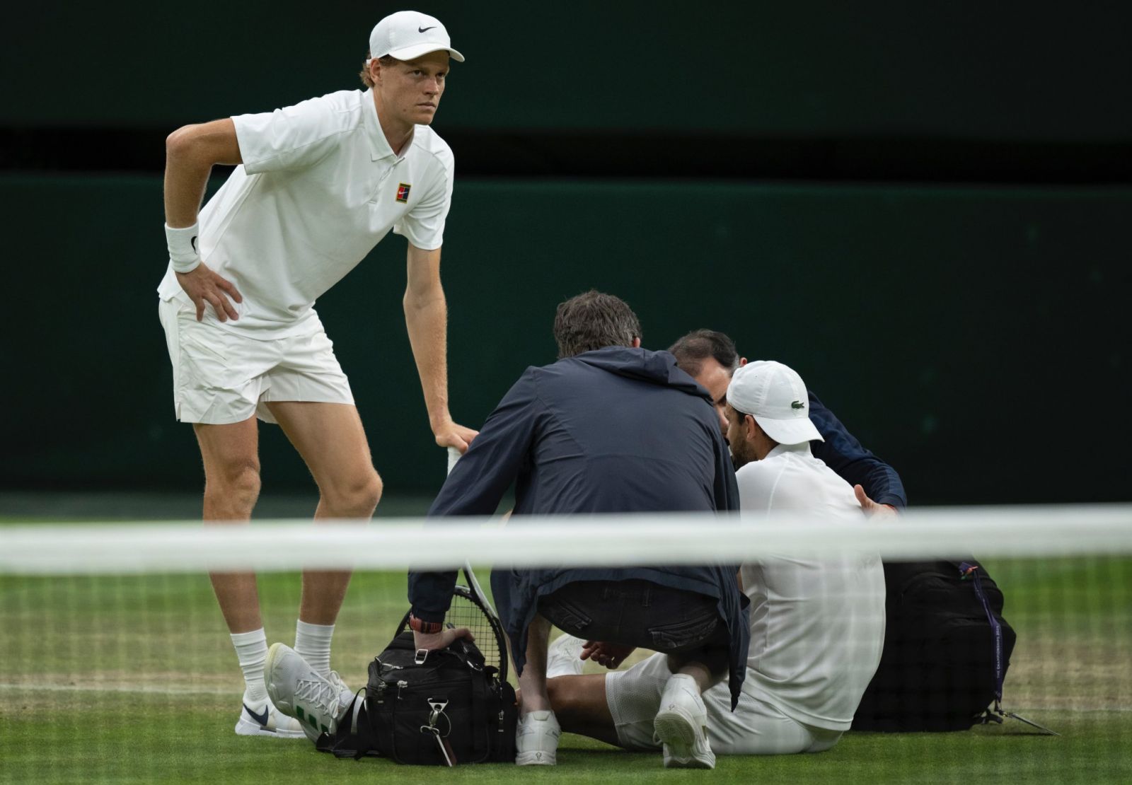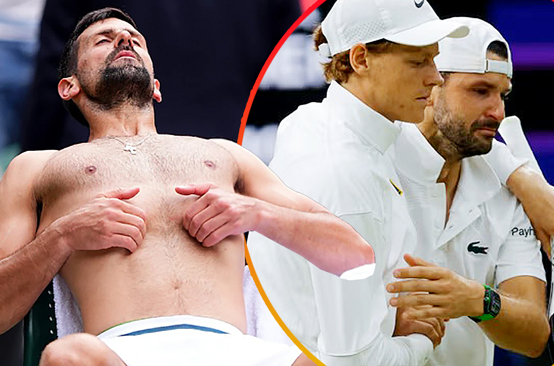 Болгар теннисчин Димитров эйс хийчихээд цээжээ барин доош суусан нь гэмтсэний дохио байлаа. Эмч нар яаралтай тусламж үзүүлсний дараагаар Димитров нулимстайгаар талбайд эргэн гарч ирээд, Синнертэй гар бариад гарч одсон юм.