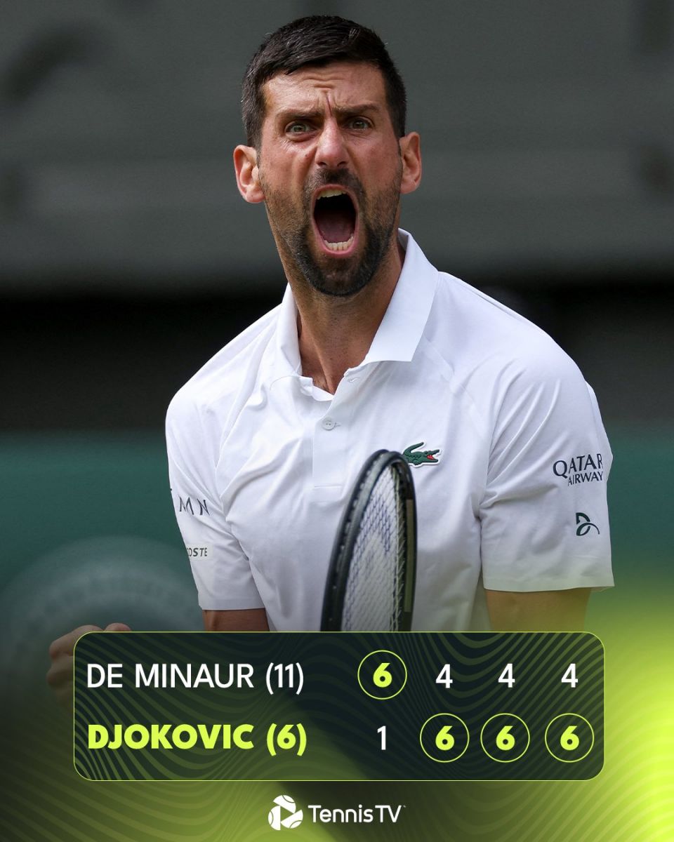 38 настай Жокович Уимблдоны эхний тойрогт гэдэс нь базлахад “шидэт эм” хэрэглэж тоглоод хожсон бол дараа нь ийнхүү цээж нүцгэлэн байж амьсгалын дасгал хийсний хүчинд хожлоо. Тэвчээр хатуужил заан шөвгийн наймд шалгарсныг нь мэргэжилтнүүд онцгойлон бахдаж байна.