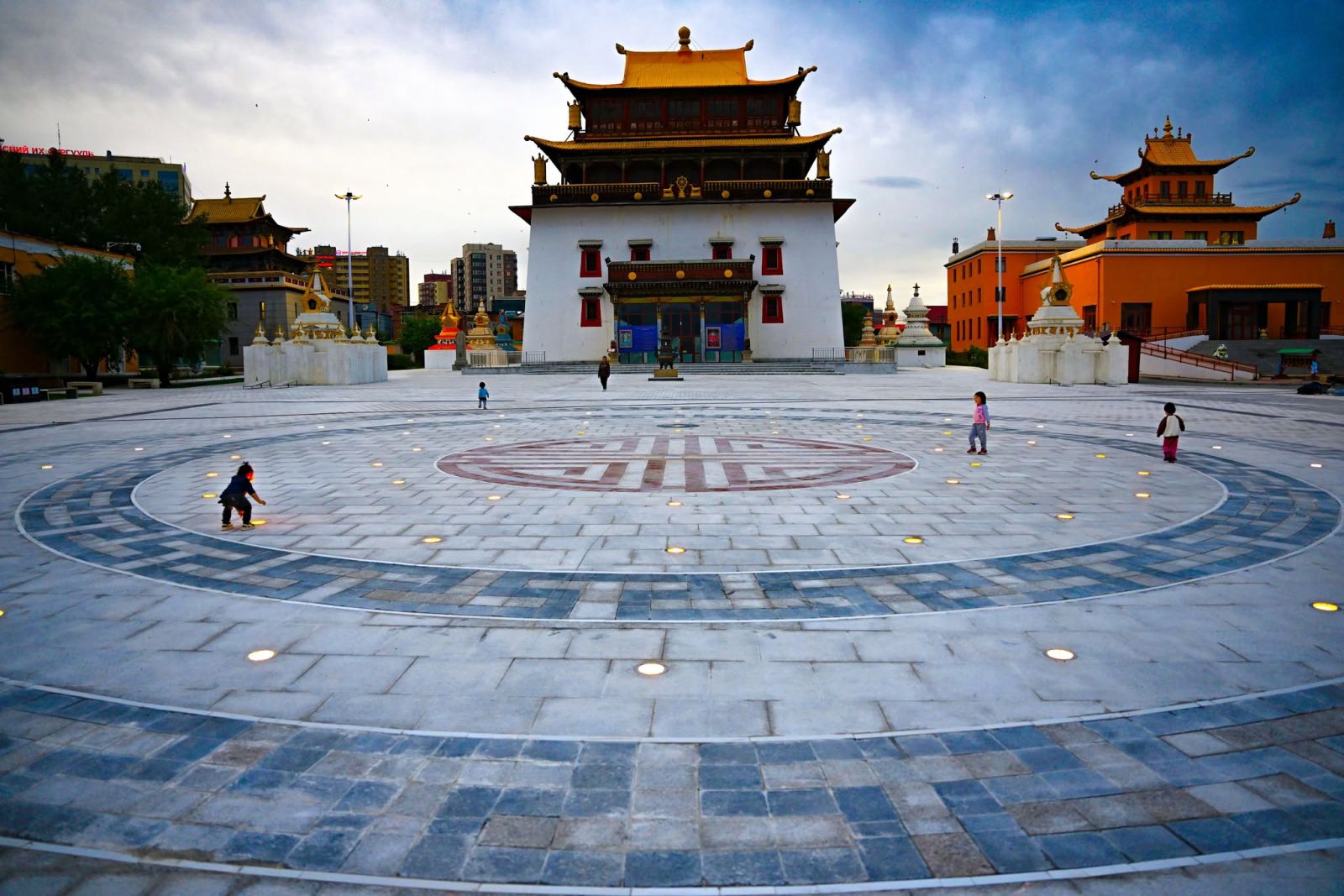 Баянгол дүүргийн 16 дугаар хороонд байрлах Монголын бурхан шашинтны төв Гандантэгчэнлин хийдийн төв талбайн засвар шинэчлэлт, тохижилтын ажлыг нийслэлийн төсвийн хөрөнгөөр "Хот тохижилтын газар" ОНӨААТҮГ болон “Дабль пирамид констракшн” ХХК гүйцэтгэж, “Хот төлөвлөлт, судалгааны институт” ОНӨААТҮГ зураг төслийг боловсруулж, нийслэлийн Хөрөнгө оруулалтын газраас захиалагчийн хяналт тавьж ажиллалаа. Төв хийдийн урд нийт 8400 ам.метр талбайг байгалийн чулуун хавтангаар шинэчилж, 820 ам.метрт нь ногоон байгууламж урлаж, иргэд амарч суух сандал, гэрэлтүүлэг, хогийн сав, хашлага хайс, шатыг шинэчиллээ. Ингэхдээ талбайн төв хэсэгт монголчуудын эрт үеэсээ хэрэглэж ирсэн хүний амьдралын ямагт мөнх, үргэлжийн хөдөлгөөн, өлмий бат оршихуйн бэлгэдэл алхан хээг тойруулан урлаж, түүний дотор талд өсөн дэвжин мандан бадрахын бэлгэдэл зоосон хээг урлажээ. Энэ хэсэгт цам харайх бүжиг хийдэг байхаар төлөвлөжээ.
