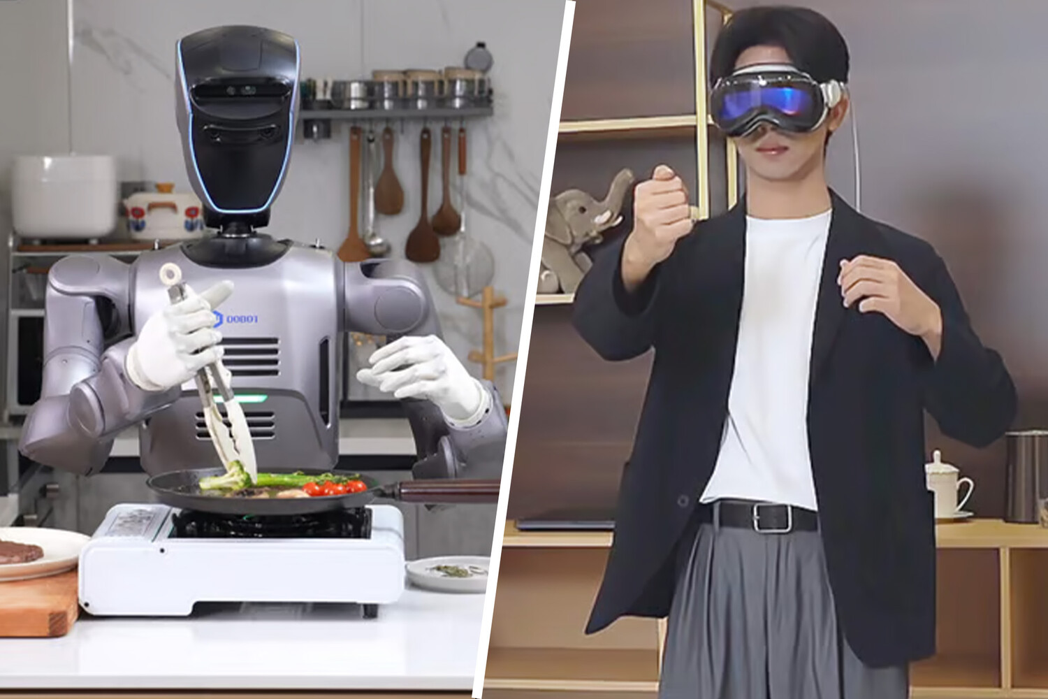 Хятадын Dobot Robotics компанийн робот 1800 км зайнаас хүнээр VR малгайн тусламжтай удирдуулж, нарийн ажиллагаатай стейк хийжээ.