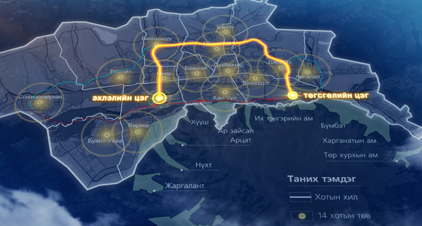 Уг төслийн нэгдүгээр тойрог авто зам төсөл нь ТЭЦ-4 авто зам, Энхтайваны өргөн чөлөө, Толгойт, Ард аюушийн авто зам, Баянхошууны уулзвар, Сонгинохайрхан дүүргийн 10 хорооны нутаг дэвсгэр, Дэнжийн мянгын авто зам, Хайлаастын гудамж, Долоон буудлын авто зам, Баруун Алтан-Өлгийн гудамж, Да хүрээний гудамж, Хилчний гудамж, Цагдаагийн Академийн Өргөн чөлөө, Дүнжингаравын гудамжийг тус тус дамжин өнгөрөх зургаан эгнээ, 26.7 км үргэлжилнэ.
