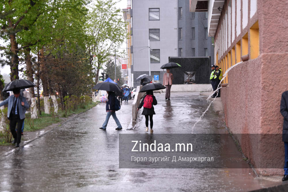 Өнөөдөр: Ихэнх нутгаар солигдмол үүлтэй. Баруун болон говийн аймгуудын нутгийн зарим газар, төвийн аймгуудын нутгийн баруун болон өмнөд хэсэг, зүүн аймгуудын ихэнх нутгаар бороо, дуу цахилгаантай аадар бороо орно. Салхи нутгийн өмнөд хэсгээр баруун өмнөөс, бусад нутгаар баруун хойноос 5-10 м/с, нутгийн зарим газраар борооны өмнө түр зуур ширүүснэ. Өдөртөө ихэнх нутгаар сэрүүсэж, Хангай, Хөвсгөл, Хэнтийн уулархаг нутаг, Завхан голын эх, Хүрэнбэлчир орчим, Орхон, Тэрэлж, Хэрлэн голын хөндий, говийн бүс нутгийн хойд хэсгээр +18…+23 градус, Их нууруудын хотгор, говийн бүс нутгийн өмнөд хэсэг, Сэлэнгэ, Хараа, Ерөө голын хөндийгөөр +29…+34 градус, бусад нутгаар +22…+27 градус дулаан байна.