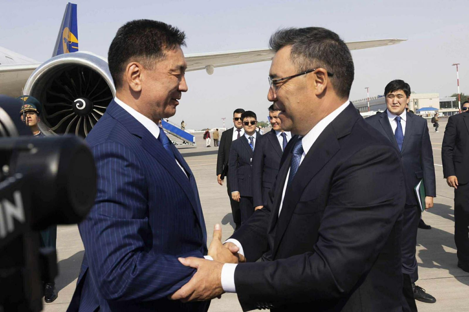 Ерөнхийлөгч У.Хүрэлсүх болон дагалдан яваа төлөөлөгчдийг Бишкек хотын “Манас” олон улсын нисэх онгоцны буудалд Бүгд Найрамдах Киргиз Улсын Ерөнхийлөгч С.Жапаров болон Монгол Улсаас тус улсад суугаа Онц бөгөөд Бүрэн эрхт Элчин сайд С.Ганхуяг, Бүгд Найрамдах Киргиз Улсаас Монгол Улсад суугаа Онц бөгөөд Бүрэн эрхт Элчин сайд А.Артыкбаев зэрэг албаны хүмүүс угтан авав.