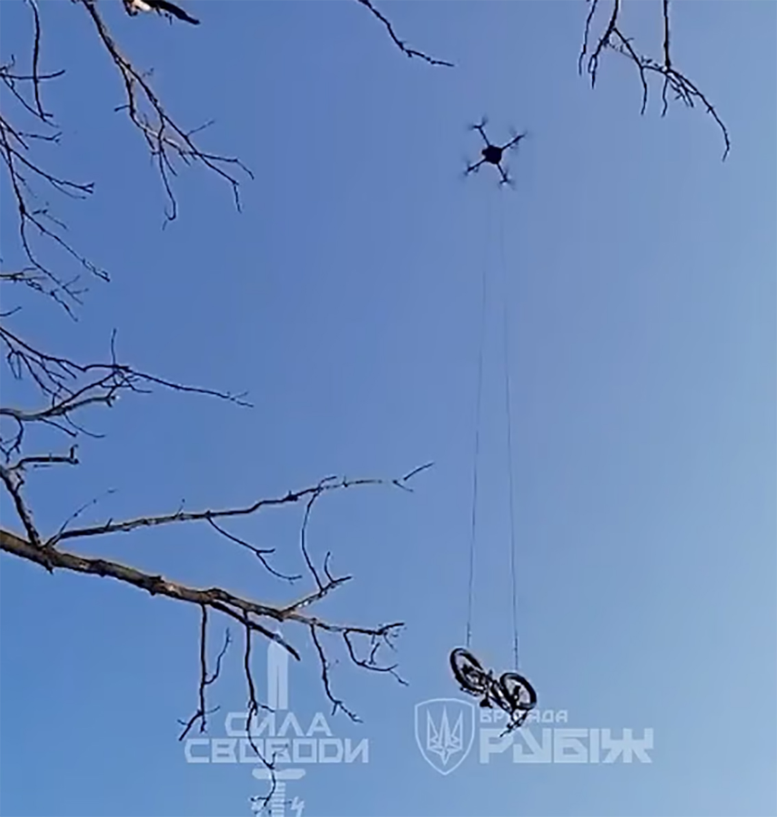Украины Үндэсний гвардийн “Рубеж” бригадынхан 39 кг жинтэй цахилгаан дугуйг бөмбөгдөгч зөөвөрлөдөг хүнд даацын жижиг дроноор шархадсан цэрэгт хүргэсэн байна.