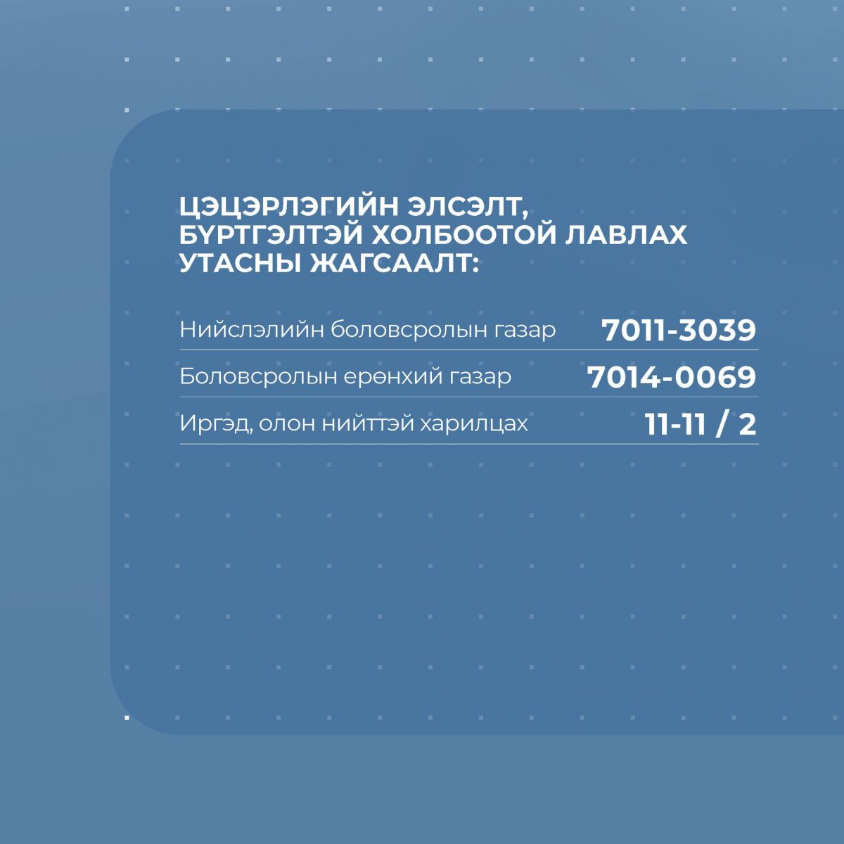 Нийслэлийн цэцэрлэгт хамрагдах хүсэлтийг өчигдрөөс буюу наймдугаар сарын 04-ний өдрөөс авч эхэллээ. Бүртгэлийг наймдугаар сарын 18-ны өдрийг дуустал "E-MONGOLIA" платформоор хүлээн авна.