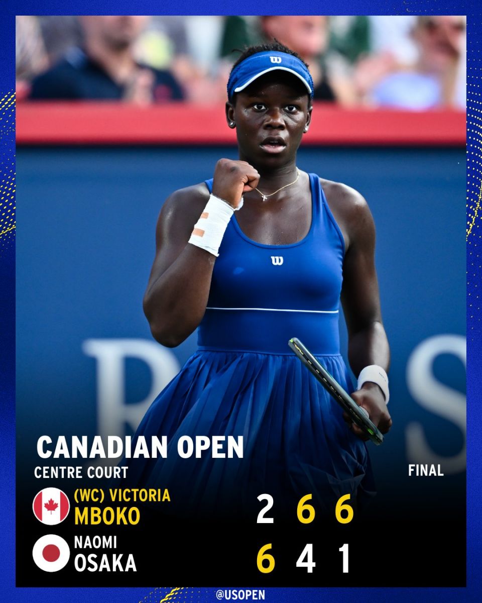 Канадын 18 настай теннисчин Викториа Мбоко Монреалийн WTA-1000-ийн финалд Наоми Осакаг 2:4, 6:4, 6:1-ээр хожиж, түрүүллээ.