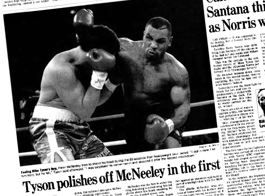 Макнили ч энэ шоу үзүүлбэрт хувьд нэмрээ хангалттай оруулсан. Цагаан арьст залуу өнгөтэй арьстай, хүчингийн хэрэгтэн Майк Тайсоны эсрэг гээд бодоход л орой руу нэг юм орж байгаа биз. Өнгө, утгыг хүртэл сайтар бодож тооцсон энэ тулаан ердөө 89 секунд үргэжилсэн.