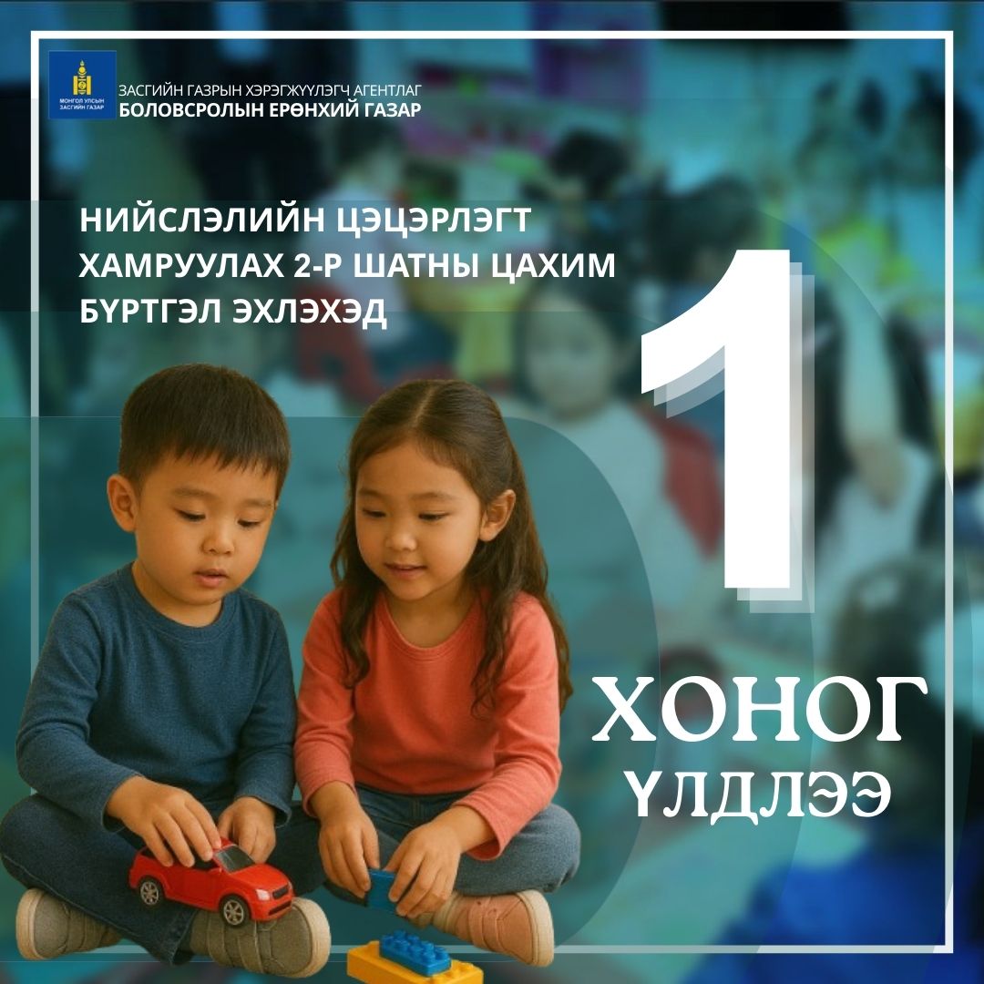 Нийслэлийн цэцэрлэгт хамруулах 2-р шатны цахим бүртгэл эхлэхэд 1 хоног үлдлээ.