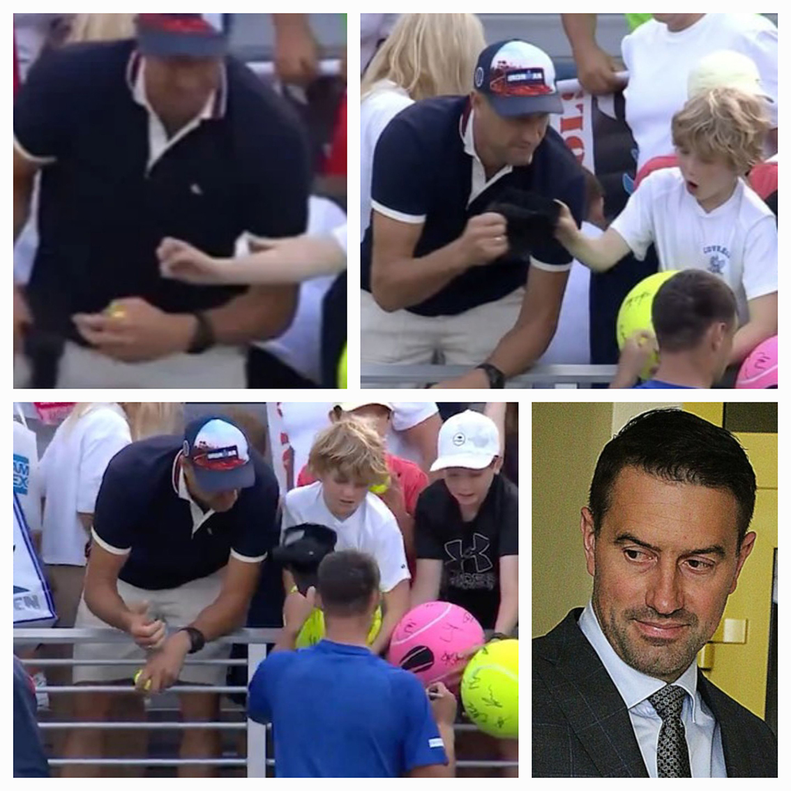 US Open-ий үеэр Польшийн теннисчин Камиль Майхжак өрсөлдөгчөө хожчихоод үзэгчид рүү очиж, гарын үсэг зурж, зураг хамт авахуулахдаа 10 настай нэгэн хүүд малгайгаа бэлэглэснийг хажууд нь зогсоо эр булаан авч буй бичлэг цацагдсан юм.